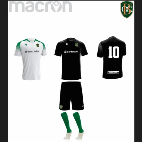 El conjunto incluye camiseta titular negra, camiseta alternativa blanca, short y medias.